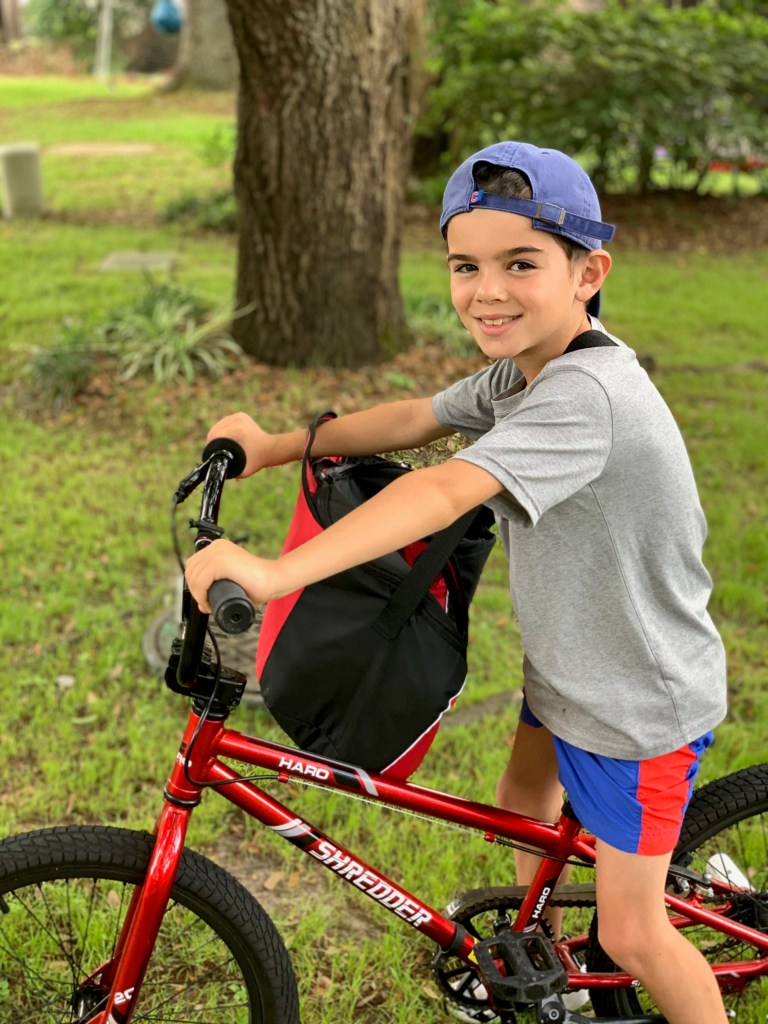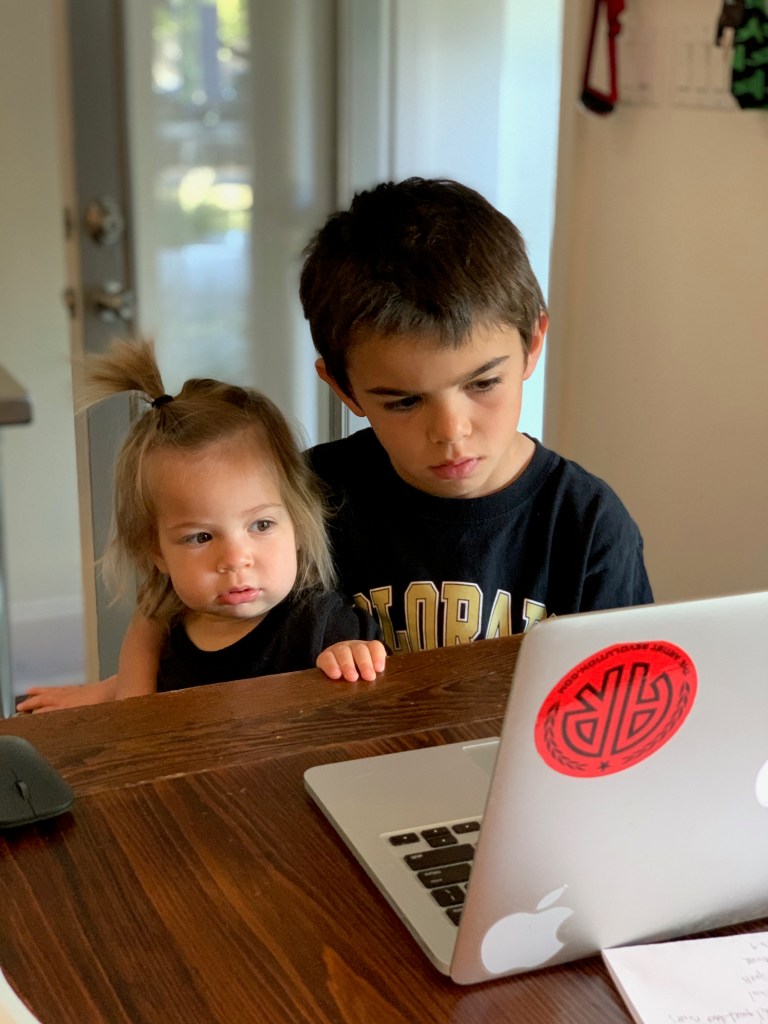 We just started homeschool today. Stuart Hall does not send that much work – so we’ve incorporated some more activities – like morning exercise, yoga, piano, creative time, and sports. Rivers was enthusiastic on day 1!