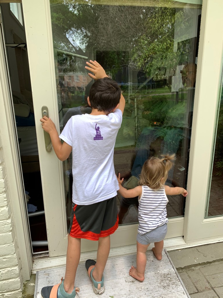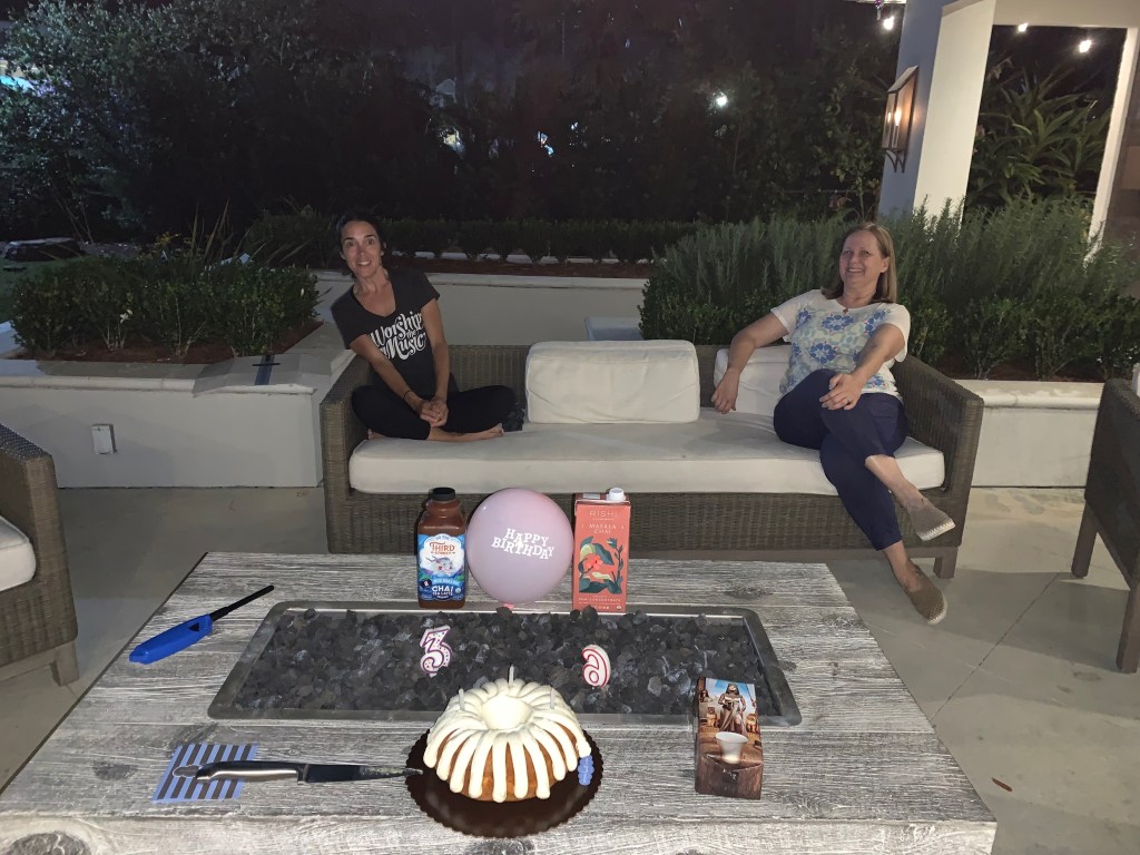 Today was Michel’s 43rd birthday. Thais surprised her with a social distanced party with chai and a bundt cake. Pops and Jilly came over. Pops brought over a yard stick.