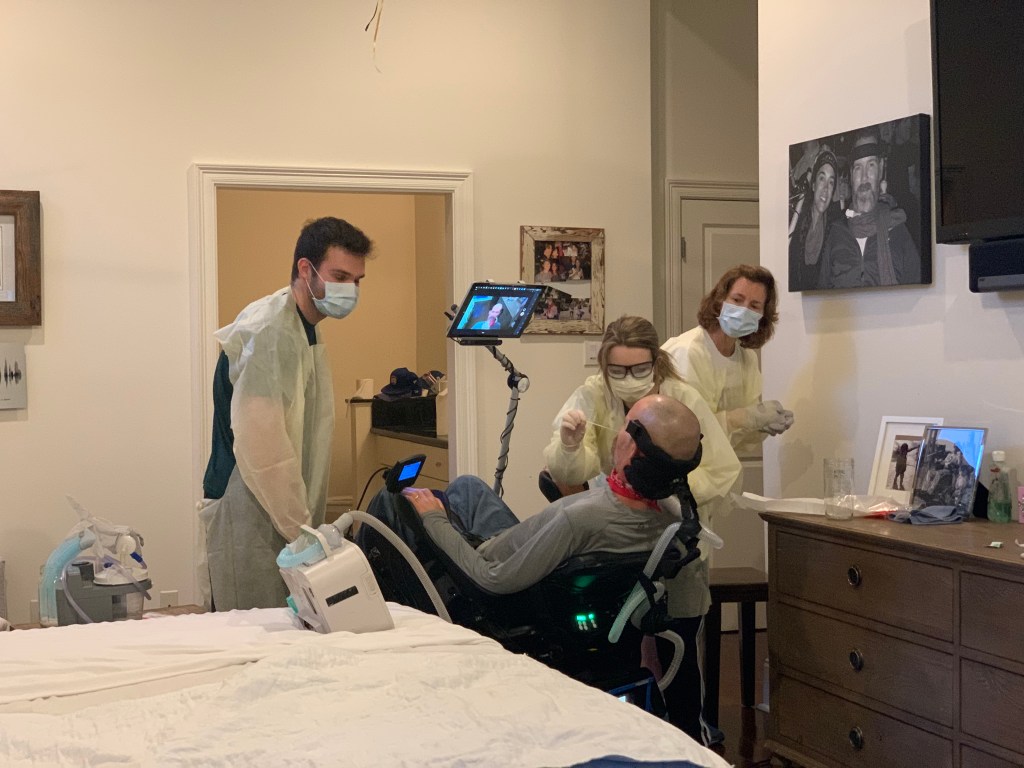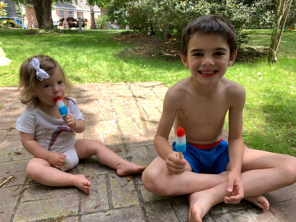 Steve had a mild headache and low grade fever today so Granny snuck him a test (they are impossible to get right now). Alyssa administered it but did it wrong (she only did one nostril) – so they had to do it twice. He wasn’t scared and took it like the tough guy he is. Right up the nostrils.