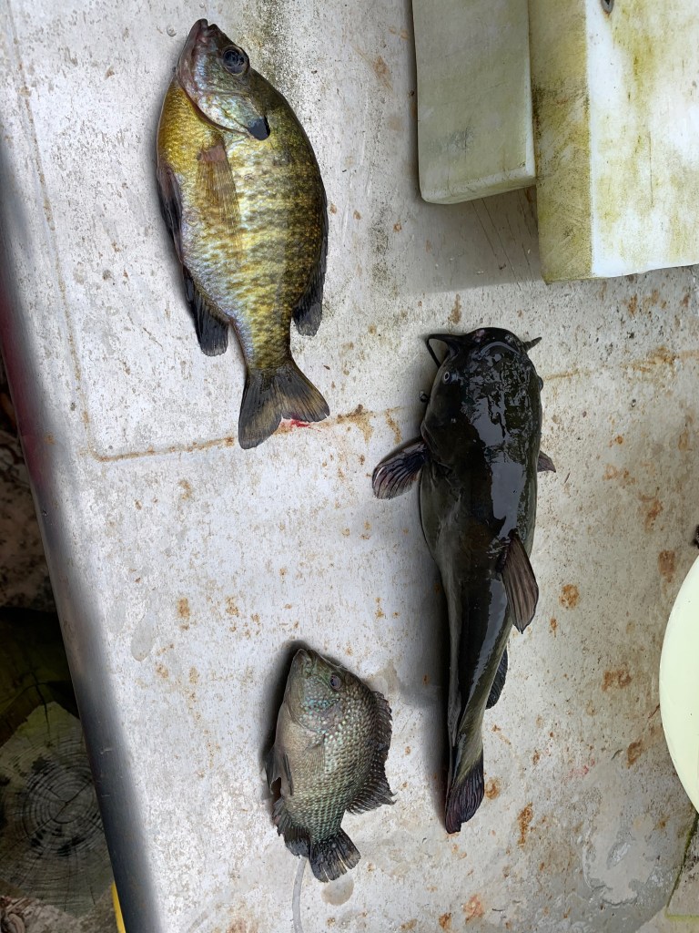 Marshall filleted them for us to cook for dinner. We didn’t have fish fry – so the taste was not as good as the catch was exciting.